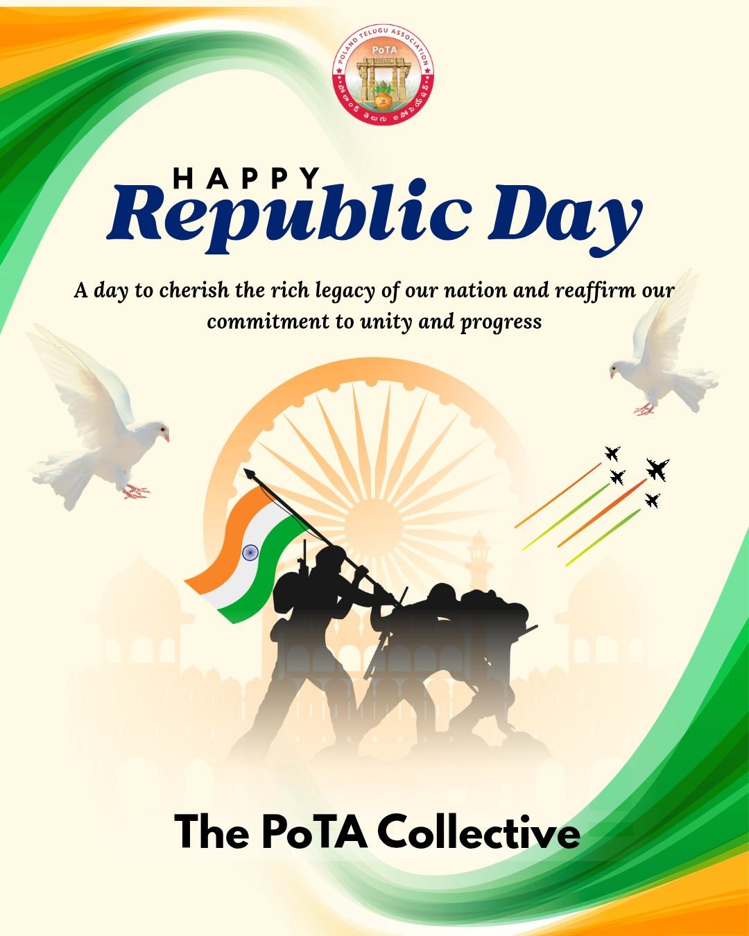 The Poland Telugu Association (PoTA) proudly extends its warm Republic Day greetings to all Indians across Poland and around the world.