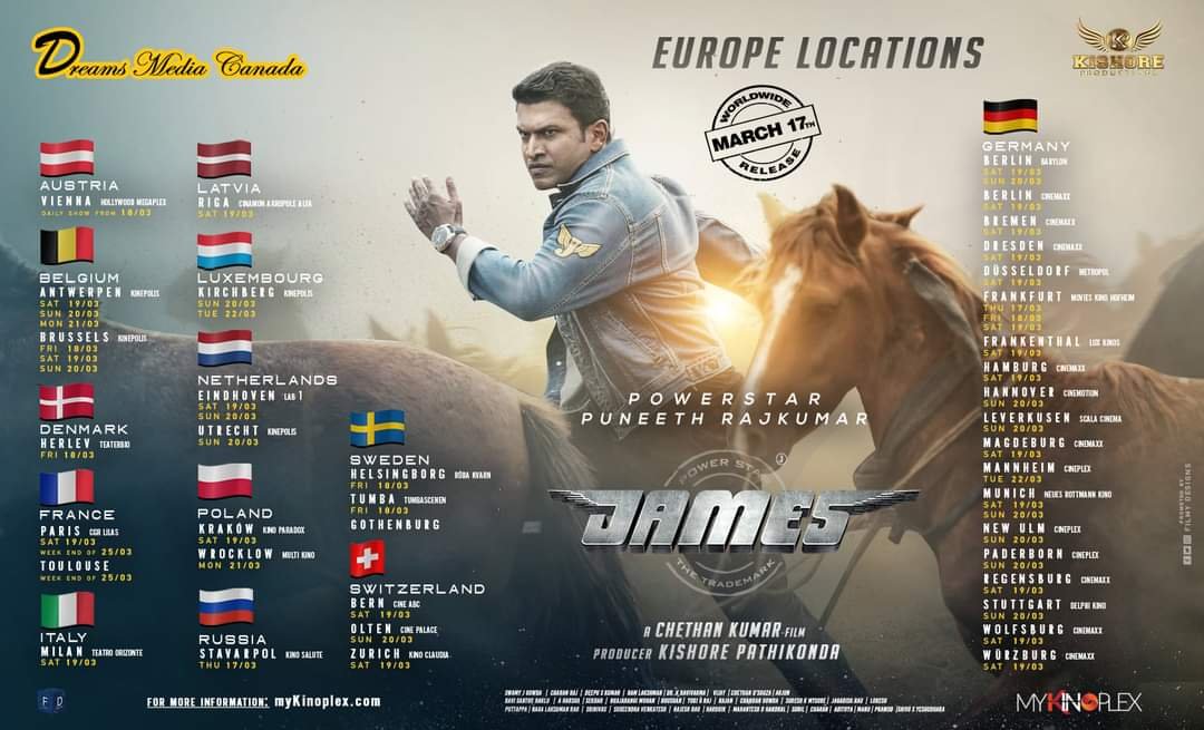 Powerstar Puneeth Rajkumar James movie Europe schdules