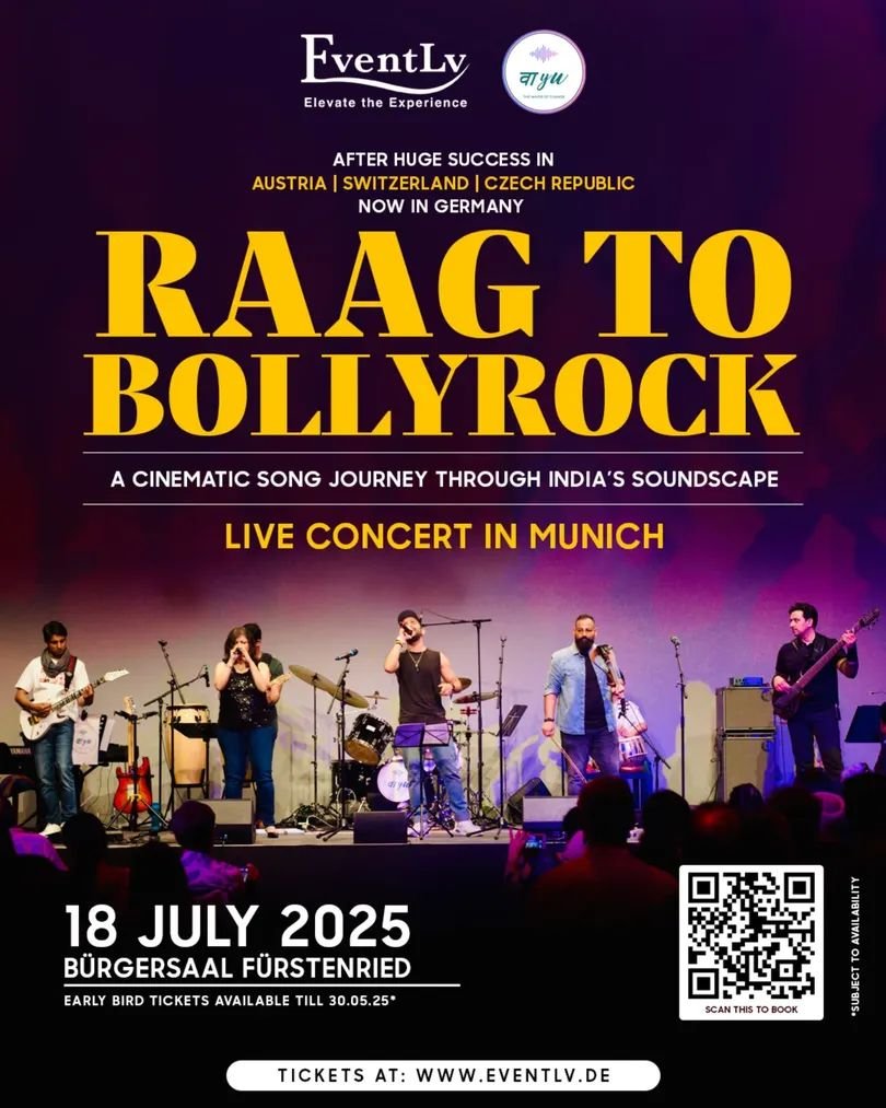 After captivating audiences in Austria, Switzerland & Czech Republic, RAAG TO BOLLYROCK is now coming to Munich! 🇩🇪🔥