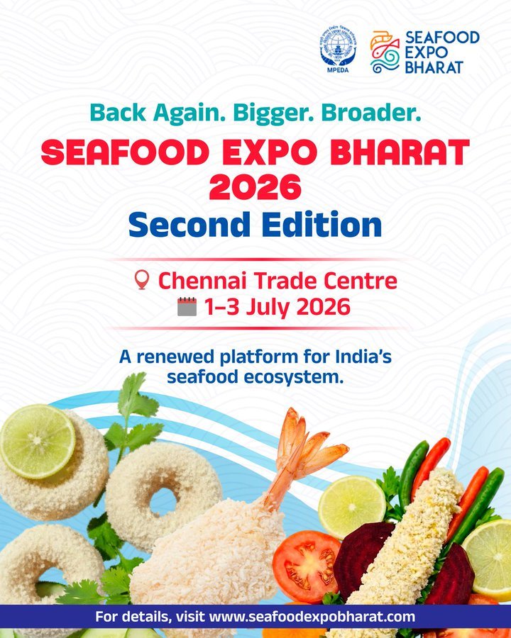 Seafood Expo Bharat 2026 will be held from 01–03 July 2026 at the Chennai Trade Centre, India.