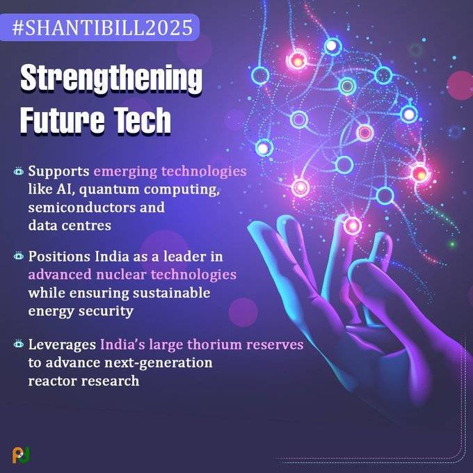 Rooted in the core principles of nuclear safety, sustainability and innovation, the Bill strengthens India’s transition towards clean and reliable energy by harnessing artificial intelligence, green manufacturing and energy sovereignty. At the same time, it opens up new avenues for industry, start-ups and the youth, reinforcing India’s commitment to a future that is self-reliant, technologically advanced and environmentally responsible.