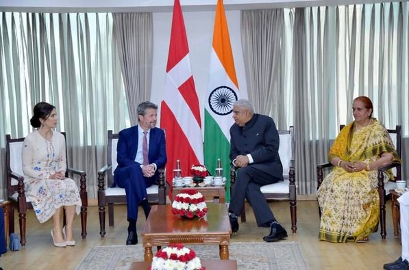 Today the Hon’ble Vice President of India, Shri. Jagdeep Dhankar hosted an official lunch banquet for Their Royal Highnesses The Crown Prince and Princess of Denmark as well as the Hon’ble Danish Ministers of Foreign Affairs, Climate, Energy and Utilities. The Danish business delegation was welcomed to Sushma Swaraj Bhavan.