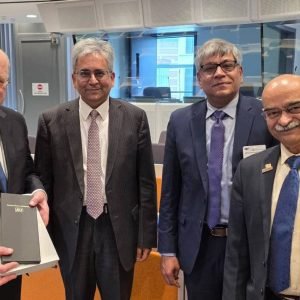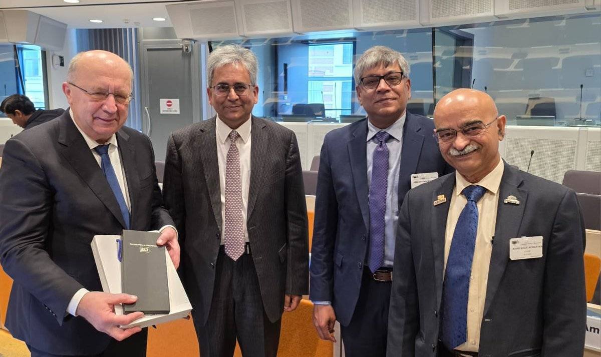 A delegation from the Society of Indian Defence Manufacturers (SIDM) visited Brussels and met with the EU Commissioner for Defence and Space, Mr. A. Kubilius, in the presence of Ambassador Saurabh Kumar.