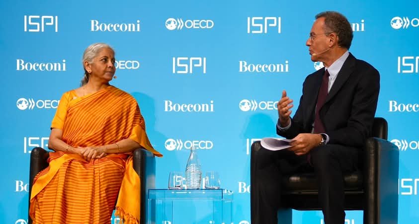 Union Minister for Finance and Corporate Affairs, Smt. Nirmala Sitharaman, and the Deputy Prime Minister of Fiji, Professor Biman Prasad, participated in a plenary session of the NEXT Milan Forum on the theme ‘Balancing Economic and Climate Resilience’, held today at the Aula Magna, Bocconi University, Milan, Italy.