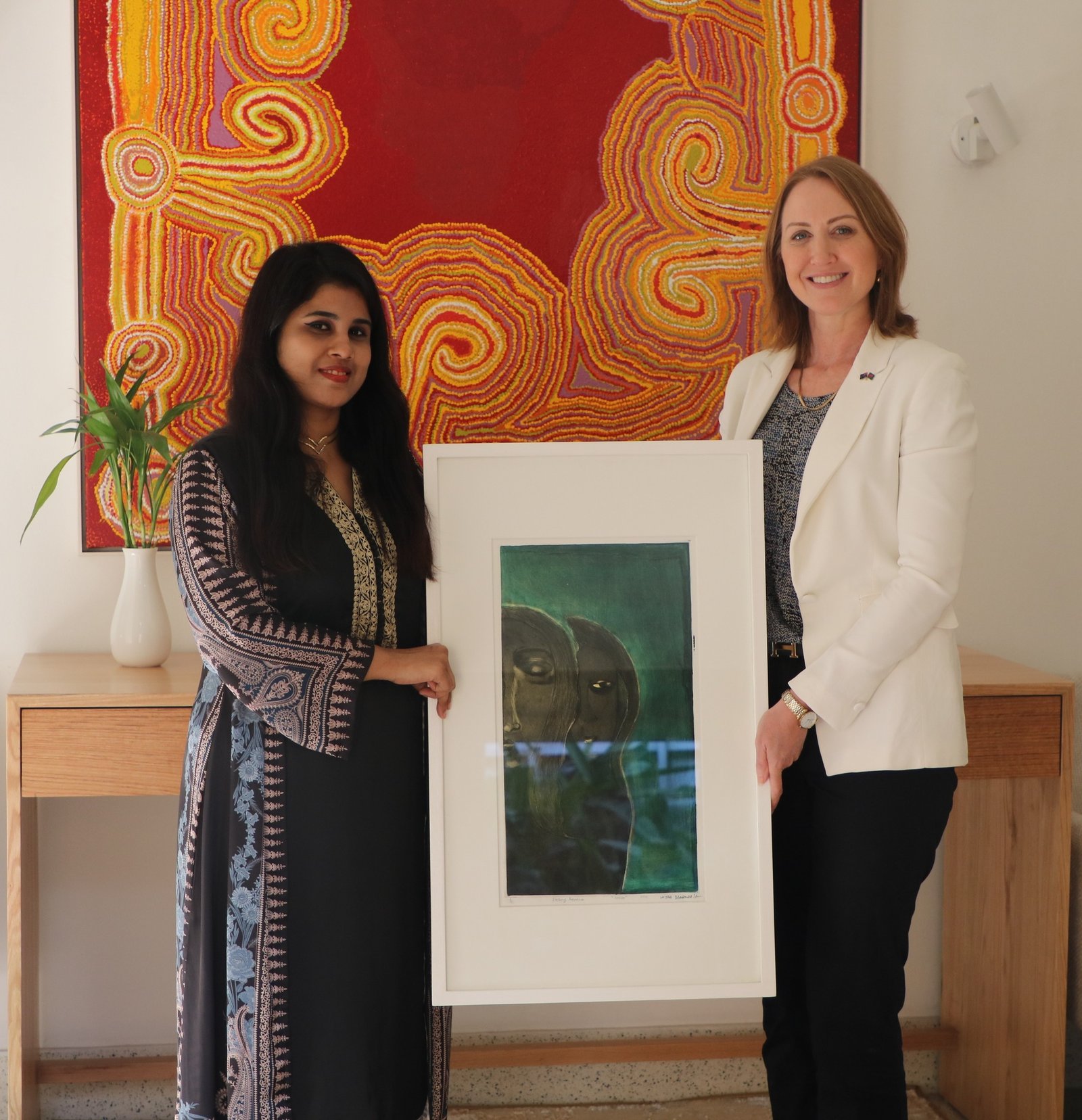 Cultural understanding through art continues to be a vital pillar of the Australia–Bangladesh people-to-people relationship. Celebrating this spirit, renowned Bangladeshi artist Lutfa Mahmuda recently gifted a collection of her modern art pieces to the Australian High Commission, contributing to the cultural bridge between the two nations.