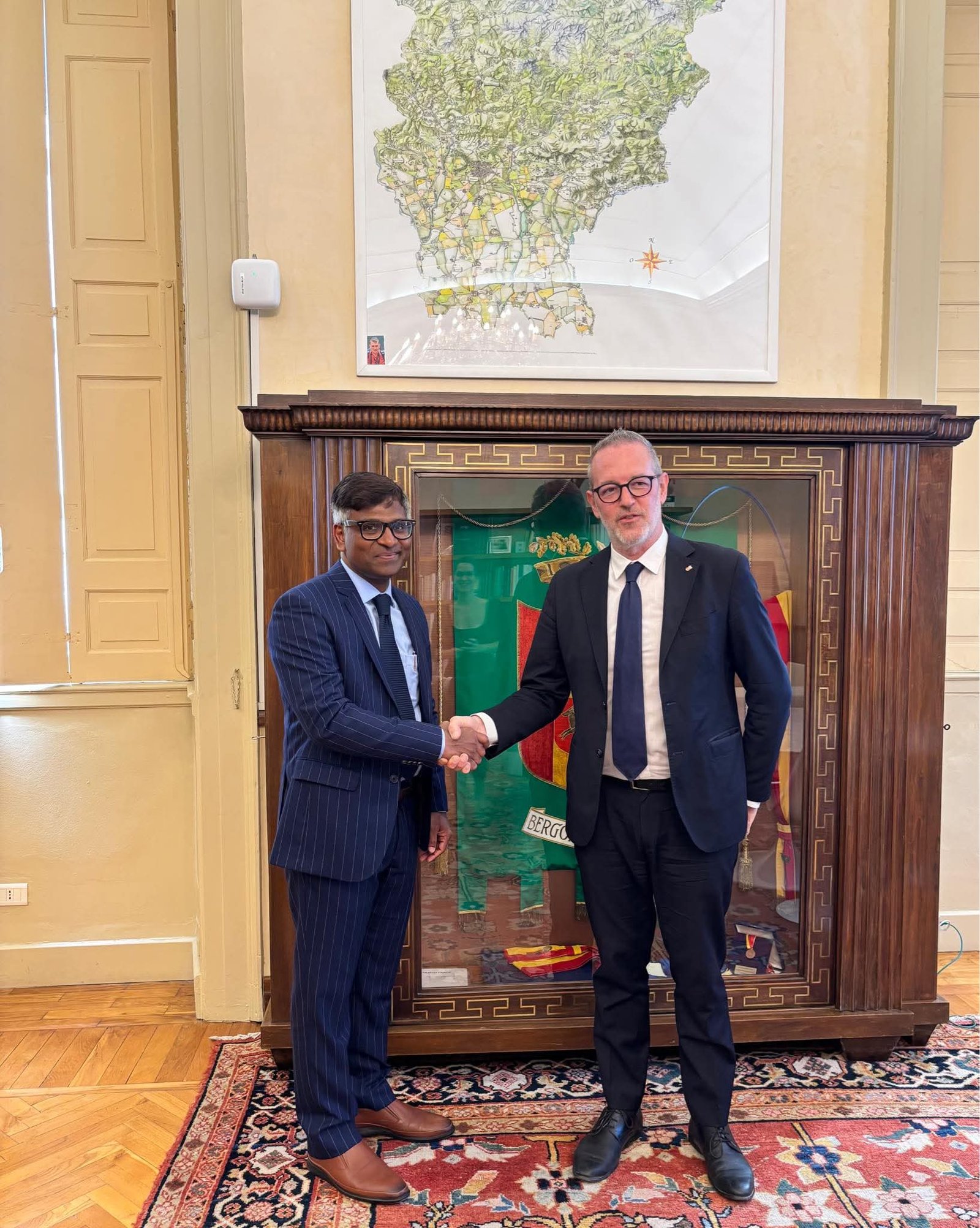 On 29 July 2025, Consul General Mr. Lavanya Kumar paid a courtesy visit to Mr. Pasquale Gandolfi, President of the Bergamo Province, at his office. The two held a constructive discussion on matters related to the welfare and well-being of the Indian community in the region.