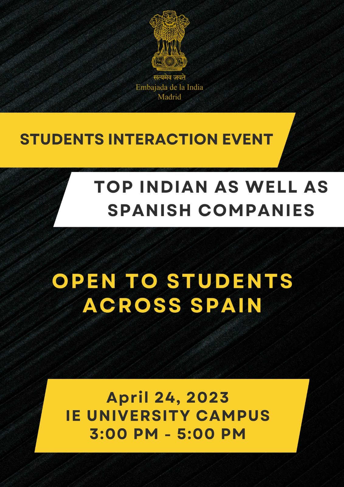 Do not miss the “Industry Interaction” event for Indian students across Spain on 24th April 2023. Leading Indian and Spanish companies will be part of the event.