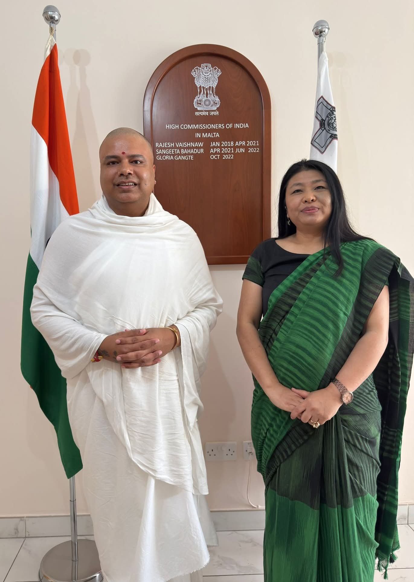 High Commissioner Mrs. Gloria Gangte Meets Swami Ram Govind Das Ji at HCI Malta