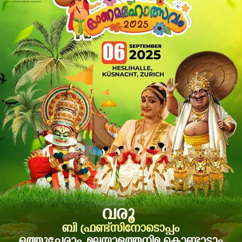 B-Friends warmly invites the Swiss Malayali community to join us for Onamahotsavam 25, a grand Onam celebration in Zurich on September 6, 2025.