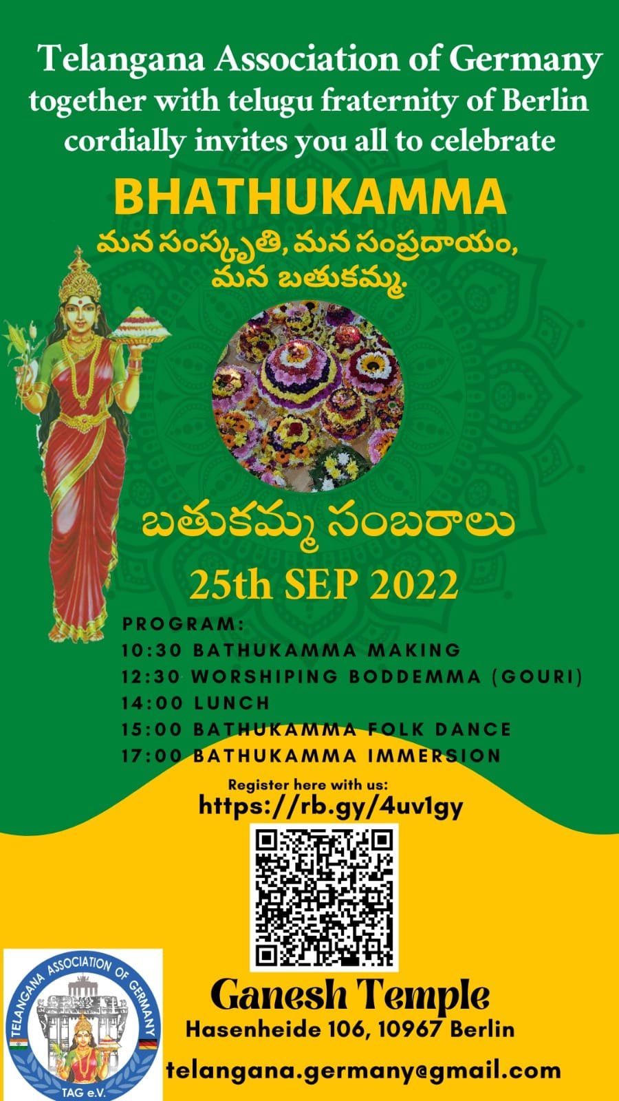 Our friends Telugu Association Germany invite for the beautiful Bhatukhamma celebration on 25th September. Let’s experience this wonderful tradition together. Follow the registration steps in the picture…see you there!
