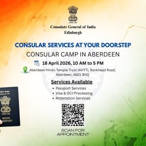 The Consulate General of India, Edinburgh is organizing a Consular Camp in Aberdeen to provide essential consular services to the Indian community.