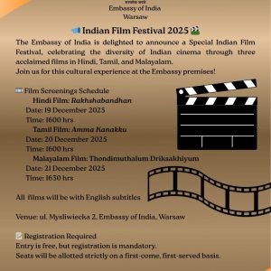 The Embassy of India is delighted to present a Special Indian Film Festival 2025, showcasing the rich diversity of Indian cinema through acclaimed films in Hindi, Tamil, and Malayalam.