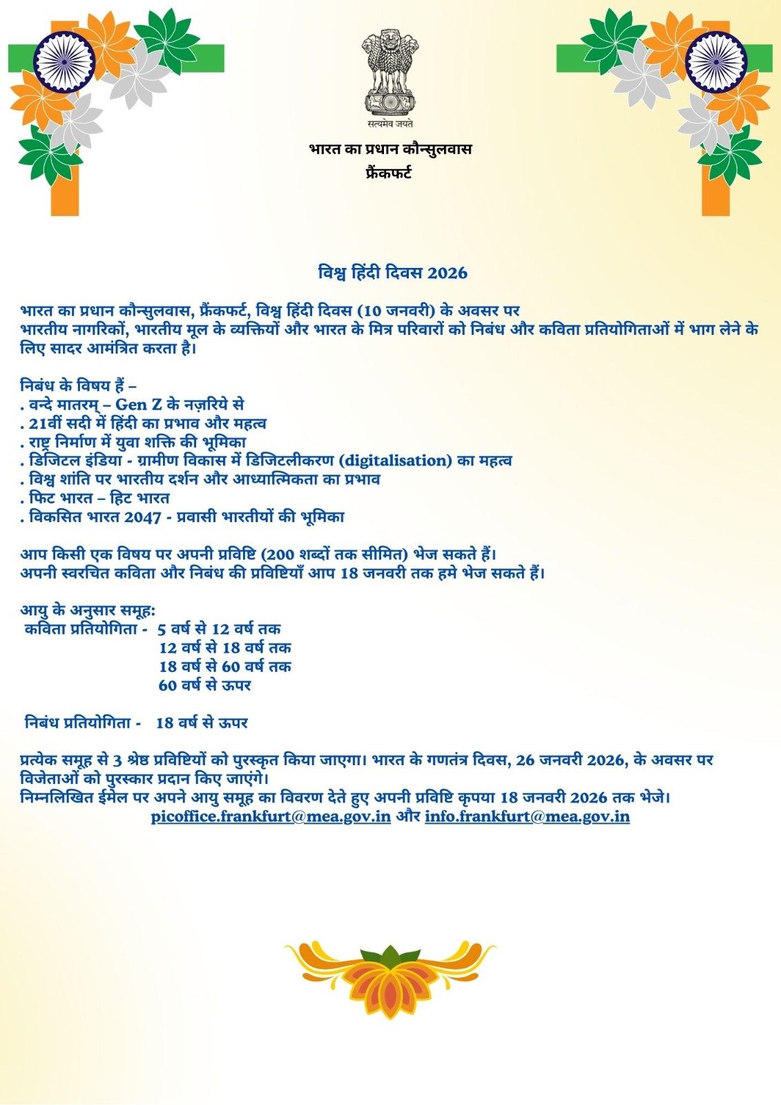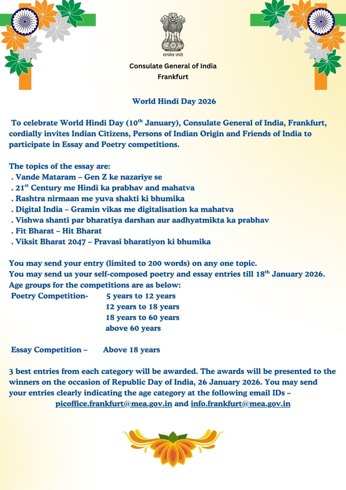 The Embassy of India in Oslo warmly invites you to join the celebration of Vishwa Hindi Divas 2026.