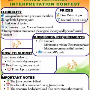 Honouring 150 years of Vande Mataram, the Embassy of India in Spain and Casa de la India invite young music groups across Spain to bring their own interpretation to this timeless song
