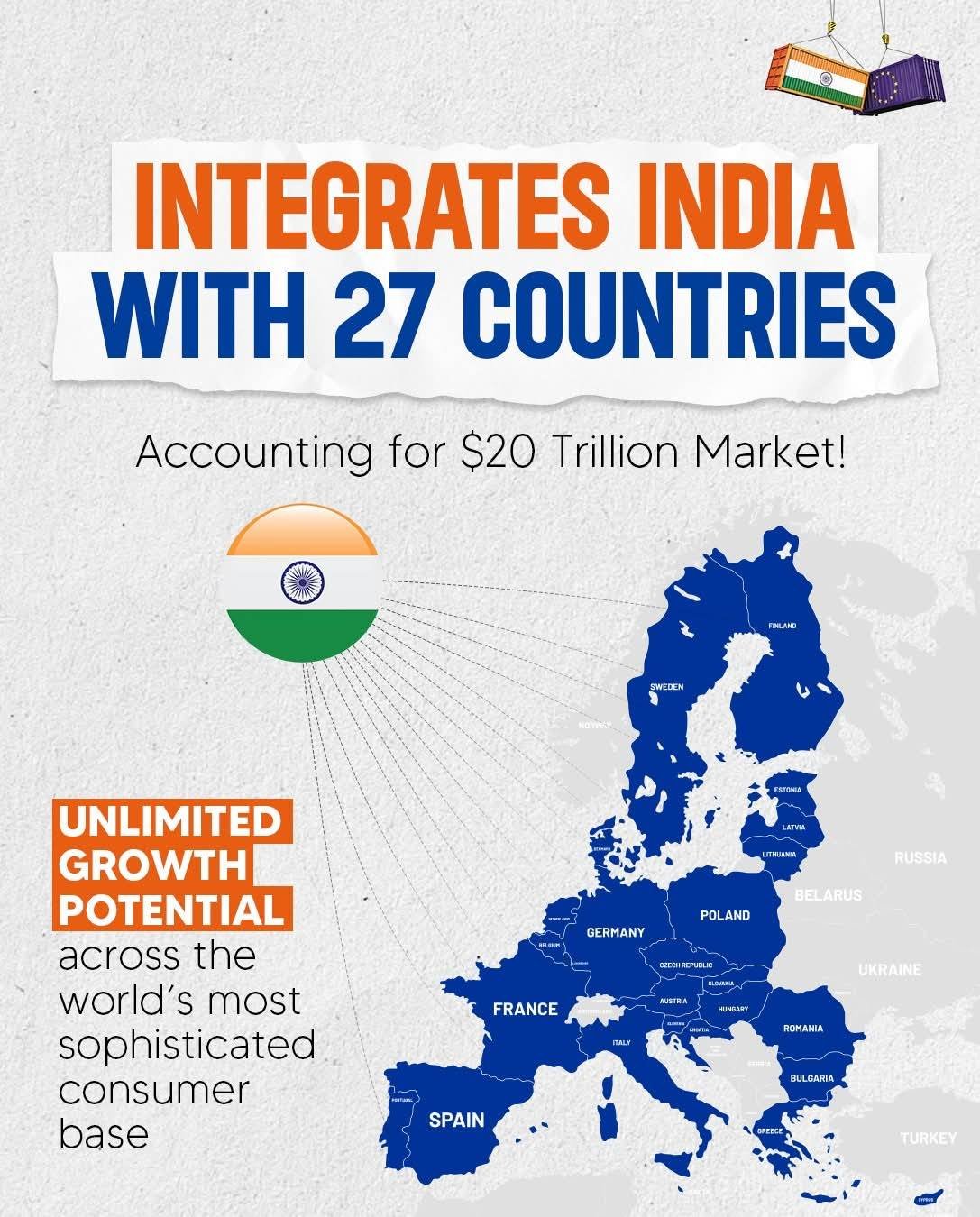 The FTA, combined with ongoing strategic dialogues, will further deepen India–EU relations, reinforcing a partnership focused on inclusive growth, job creation, and global prosperity.