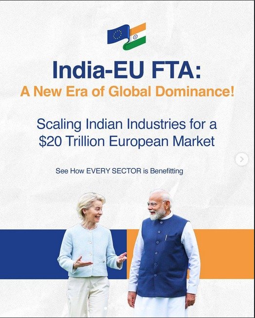 The historic India–EU Free Trade Agreement (FTA) marks a major milestone in the economic partnership between India and the European Union, opening new avenues for trade, investment, and strategic collaboration.