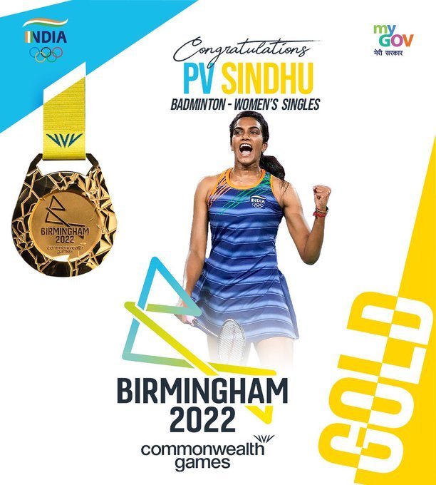 Pvsindhu1 pi pride of India creates history by winning gold medal at the CWG2022 games in Birmingham.