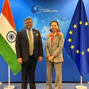 Secretary (West) Sibi George met Ms. Belen Martinez Carbonell, EEAS Secretary General, at the EU Headquarters in Brussels.