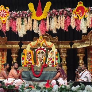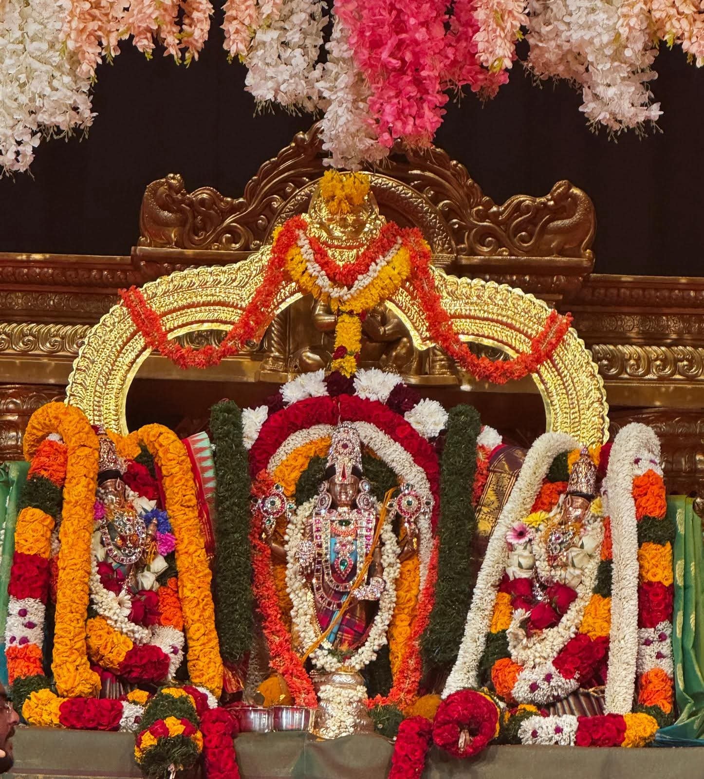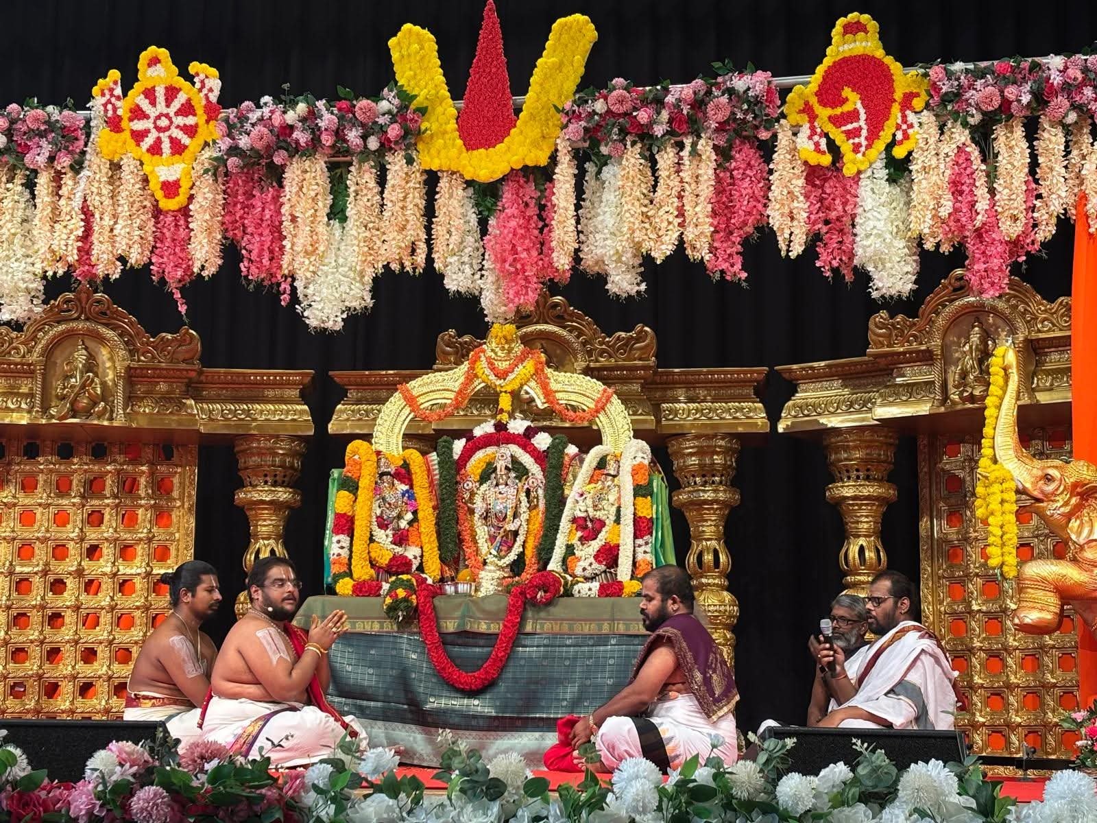 Devotees participated with deep devotion, offering prayers and seeking blessings for world peace, harmony, and prosperity. Adding to the sanctity and emotional connection, garlands, flowers, and holy Tirupati laddus were specially brought from India, carrying the divine essence of Tirumala.