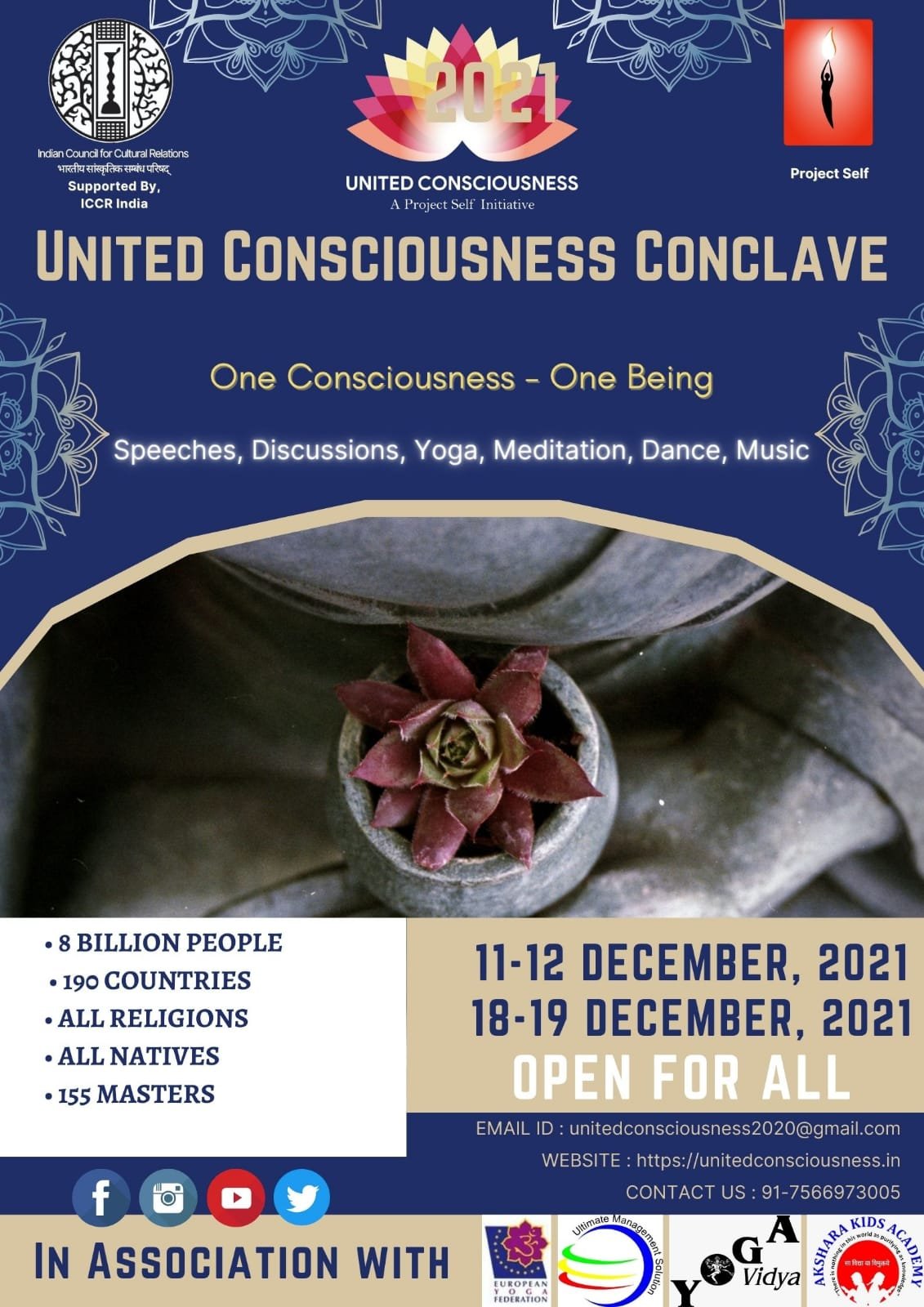 Global Spiritual Conclave called, “United Consciousness Conclave (UCC2021)” on 11-12-18-19 December 2021. UCC 2021, reflects on the concept of social, emotional, physical and spiritual well-being for all on the planet.