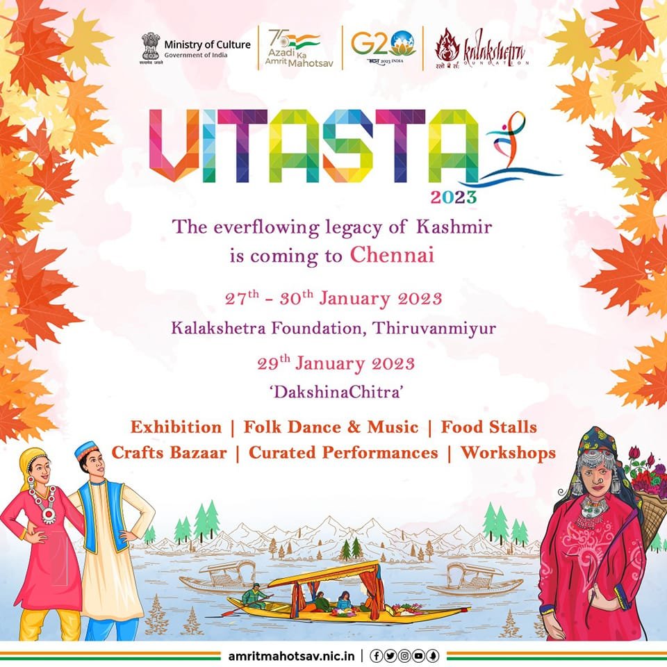 The biggest celebration of Kashmir’s culture, literary legacy, cuisine, arts & music is here! Vitasta, an initiative of Ministry of Culture, Government of India to showcase the best of Kashmir through PAN India festivals across 5 states will kick start in Chennai.