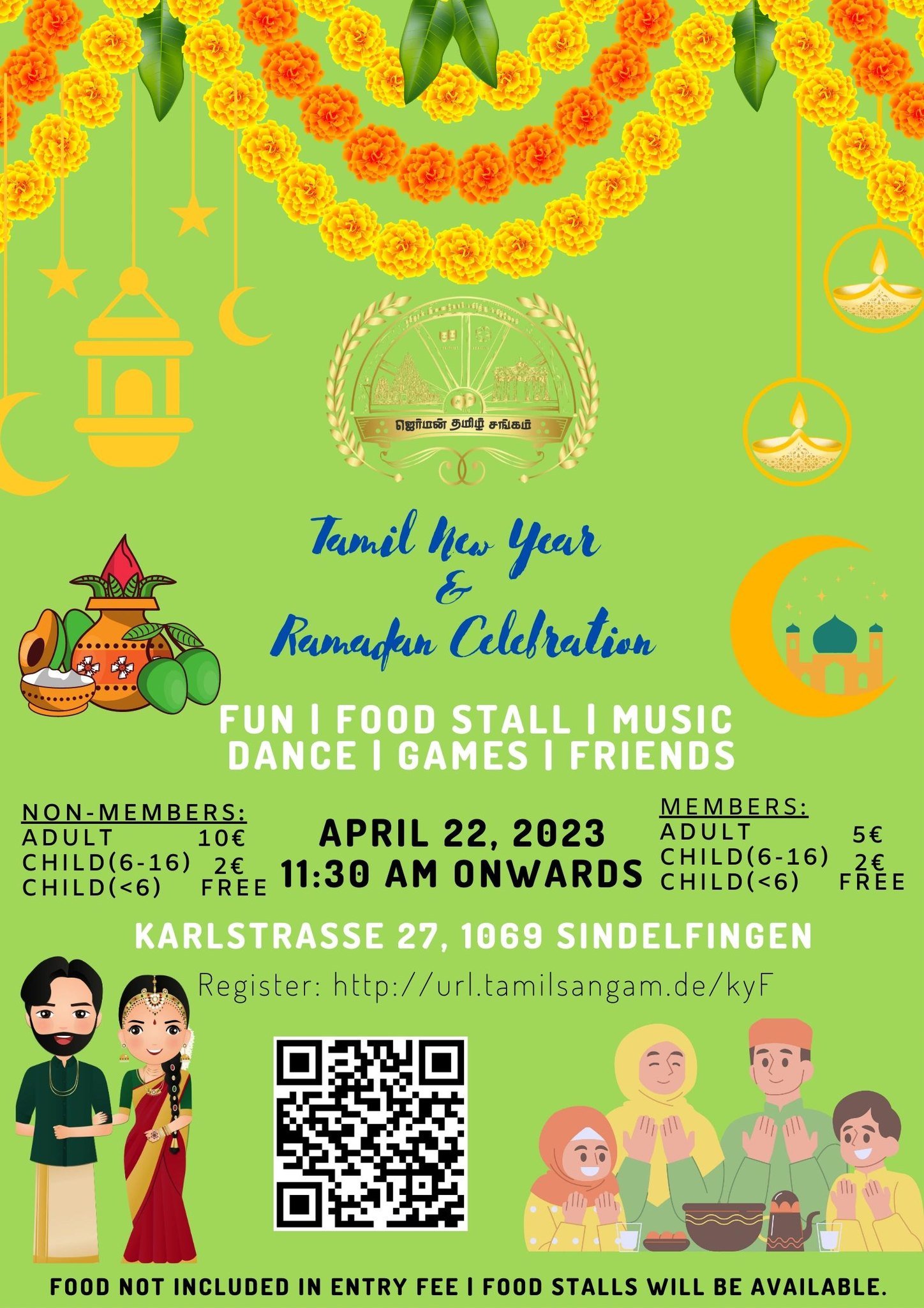We would like to welcome you all to our Tamil New year and Ramadan celebration on 22nd April 2023. For registration please use this link. http://url.tamilsangam.de/kyF